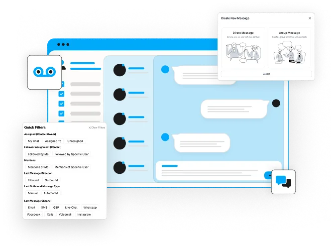 Engage across SMS, email, Facebook, and Google from one inbox