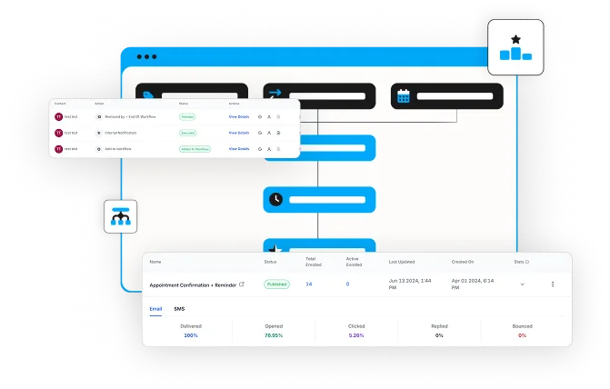 Trigger emails, SMS, or voicemails based on status or tags